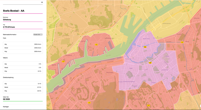 Pattern är en informationsplattform som används för att utforska och värdera potentialen i platser och fastigheter. Genom integrationen med Svefa som datakälla får användarna tillgång till marknadsinformation som stärker deras beslutsunderlag.